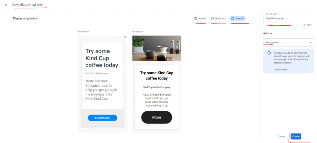 Step 5: Name and Size Your Ad